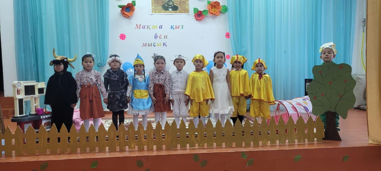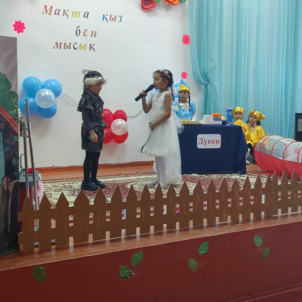 20 қаңтар күні "Бар білімге бас болған- әліппе ғылым анасы" атты бастауыш сынып мұғалімдерінің апталық жоспары бойынша мектепалды даярлық тобының тәрбиешісі Досономанова Жанар Қуатқызының ұйымдастыруымен даярлық тобының оқушылары " Мақта қыз бен мысық" ертегісін сахналады. Аталған іс-шара оқушылардың көркем шығармаға, соның ішінде қазақ ертегілеріне деген қызығушылығын арттырып, ой- қиялын дамыту мақсатына бағытталды. Оқушылар арнайы кейіпкерлер киімін киіп, өздеріне берілген рөлді жақсы сомдап, сахнаның сәнін келтірді. Сонымен қатар балалардың сахнада өзін-өзі ұстауы, сөйлеу мәнері көрермендердің көңілінен шықты. "Талаптыға нұр жауар" деген даналықты тілге тиек ете отырып, балғын балаларға болашақта биік белестерді бағындыратын өнер иесі болуларына тілектеспіз. Оқушылардың шығармашылық қабілеті мен ой-қиялын дамытуға үлкен үлес қосып жүрген ұстаздарға айтар алғысымыз шексіз.